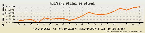 AUD/CZK, tassi di cambio storici