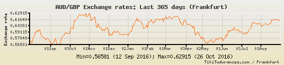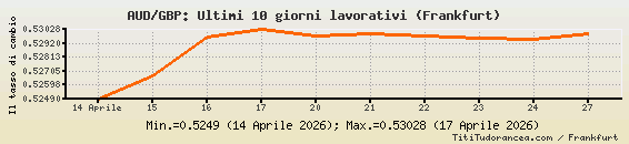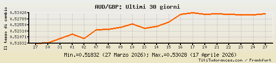 1 Dollaro australiano = 0.52996 sterline britanniche