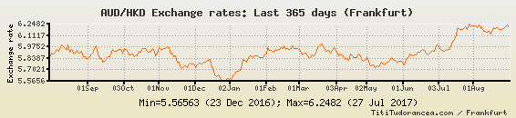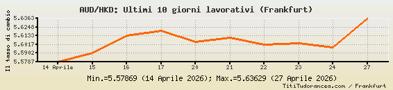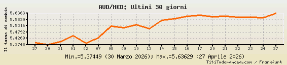 1 Dollaro australiano = 5.63629 dollari di Hong Kong