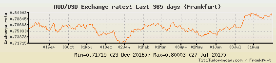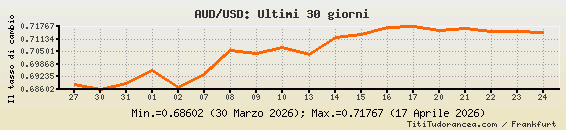 1 Dollaro australiano = 0.71445 dollari statunitensi