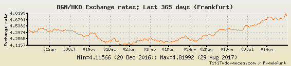 1 Lev bulgaro = 4.67655 dollari di Hong Kong