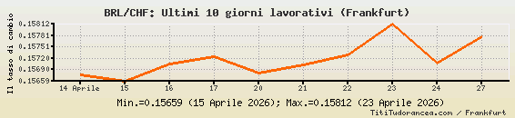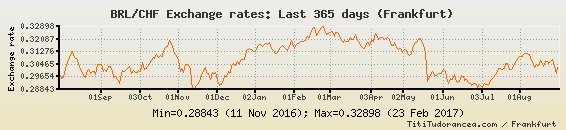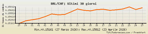 1 Real brasiliano = 0.15779 franchi svizzeri