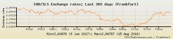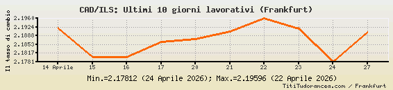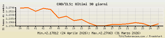 1 Dollaro canadese = 2.19019 nuovi sicli