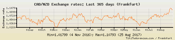 Il tasso di cambio CAD / NZD