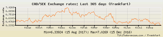 Il tasso di cambio CAD / SEK