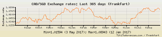 1 Dollaro canadese = 0.93297 dollari di Singapore