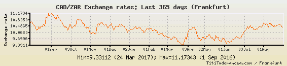 Il tasso di cambio CAD / ZAR