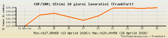 1 Franco svizzero = 120.00054 rupie indiane