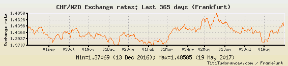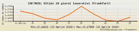 1 Franco svizzero = 2.16752 dollari neozelandesi