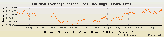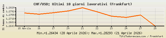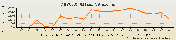 1 Franco svizzero = 1.26743 dollari statunitensi