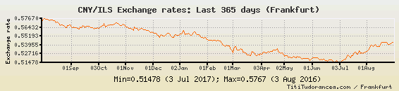 Il tasso di cambio CNY / ILS