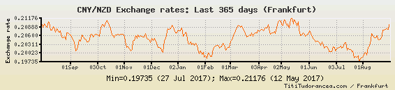 Il tasso di cambio CNY / NZD