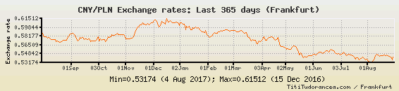 Il tasso di cambio CNY / PLN
