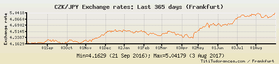 Il tasso di cambio CZK / JPY
