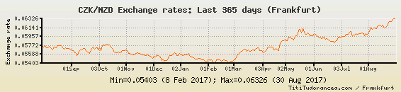 1 Corona ceca = 0.0815 dollari neozelandesi