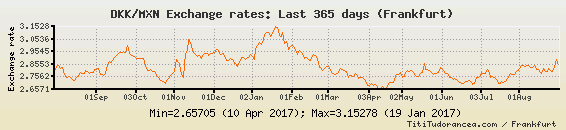 Il tasso di cambio DKK / MXN