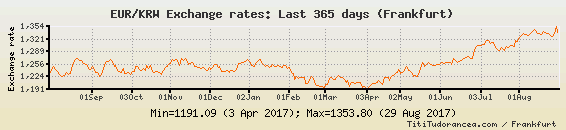 Il tasso di cambio EUR / KRW