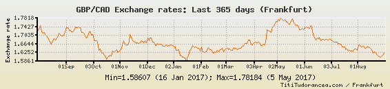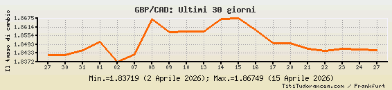 1 Sterlina britannica = 1.84558 dollari canadesi