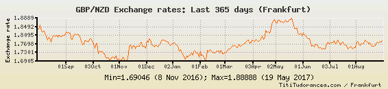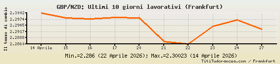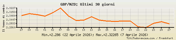 1 Sterlina britannica = 2.29279 dollari neozelandesi