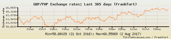 Il tasso di cambio GBP / PHP
