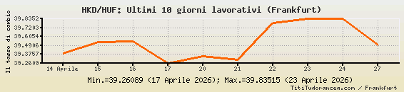 1 Dollaro di Hong Kong = 39.49609 fiorini