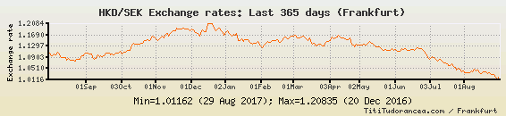 Il tasso di cambio HKD / SEK