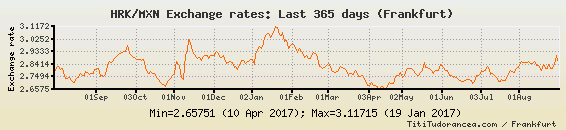 Il tasso di cambio HRK / MXN