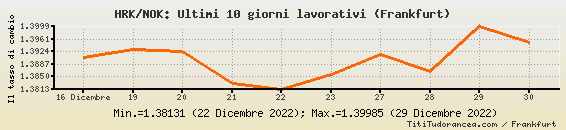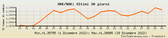 Il tasso di cambio di oggi (30 Dicembre 2022)