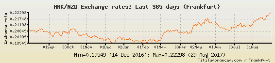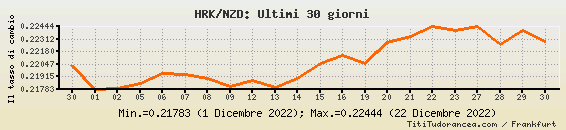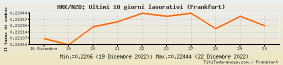 1 Kuna croata = 0.22289 dollari neozelandesi