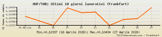 1 Fiorino ungherese = 0.10434 baht