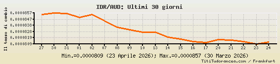 1 Rupia indonesiana = 0.0000812 dollari australiani