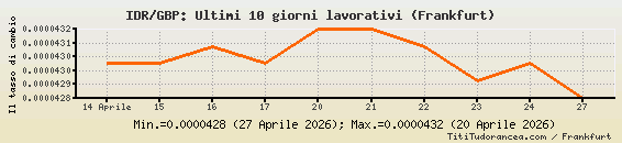 1 Rupia indonesiana = 0.0000428 sterline britanniche