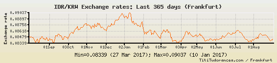 Il tasso di cambio IDR / KRW