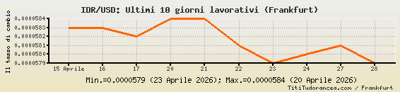 1 Rupia indonesiana = 0.0000579 dollari statunitensi
