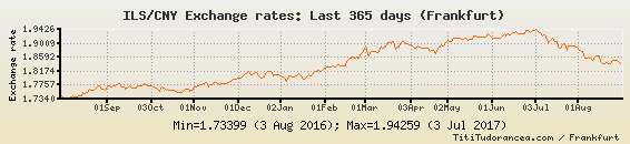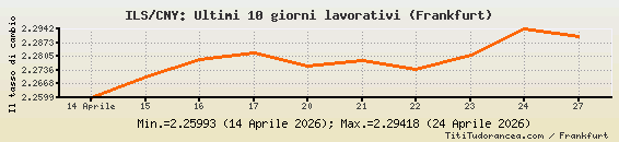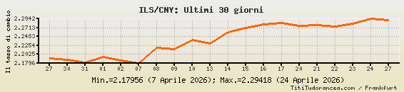 1 Nuovo siclo israeliano = 2.29062 yuan