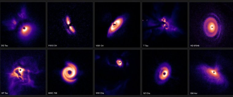 Proprio come i sistemi planetari maturi, le nuove immagini mostrano la straordinaria diversità dei dischi che formano pianeti. "Alcuni di questi dischi mostrano enormi bracci a spirale, presumibilmente guidati dall'intricato balletto dei pianeti in orbita", dice Ginski.