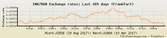 Il tasso di cambio INR / BGN