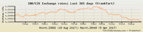 Il tasso di cambio INR / CZK