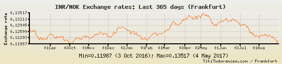Il tasso di cambio INR / NOK