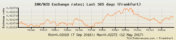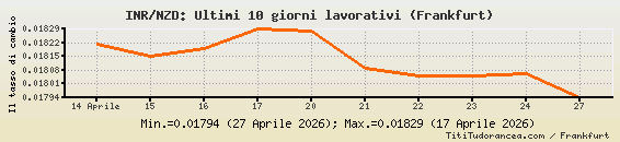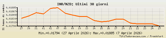 1 Rupia indiana = 0.01794 dollari neozelandesi