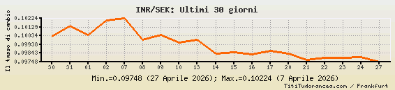 INR/SEK, tassi di cambio storici