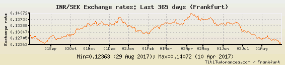 Il tasso di cambio INR / SEK