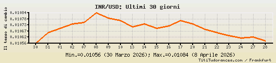 INR/USD, tassi di cambio storici