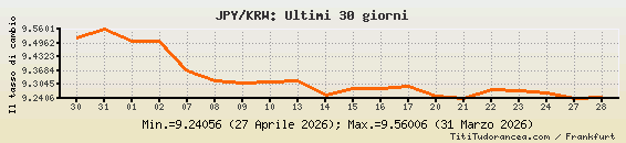 JPY/KRW, tassi di cambio storici