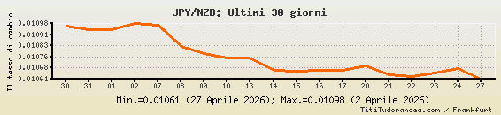 JPY/NZD, tassi di cambio storici
