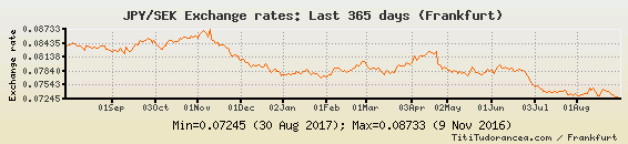 Il tasso di cambio JPY / SEK