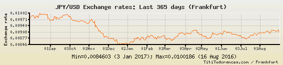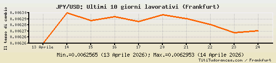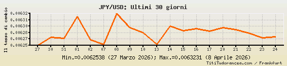 1 Yen giapponese = 0.0062728 dollari statunitensi