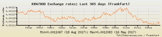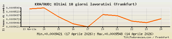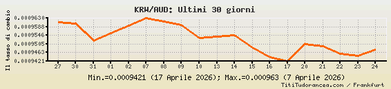 1 Won sudcoreano = 0.0009476 dollari australiani