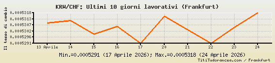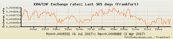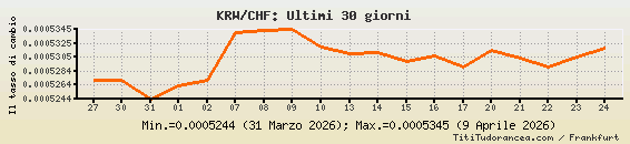 1 Won sudcoreano = 0.0005318 franchi svizzeri