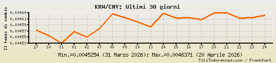 KRW/CNY, tassi di cambio storici